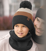 Czapka i komin dla chłopca, merino 50%, Nabasco, czarny, 50-52 cm