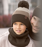 ( ilość produktów: 342 )Czapka zimowa z kominem dla chłopca, Gutwin, grafit + brąz, 53-56 cm