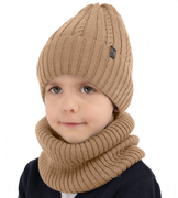 Komplet zimowy dla chłopca: czapka i komin, Moreo, karmel, 54-59 cm