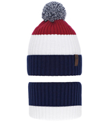 Komplet zimowy dla chłopca, czapka i komin, Oddan, granat/czerwony, 50-54 cm