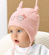 Czapka wiosenna/jesienna, dla dziewczynki, z króliczkiem, jasny róż, Katai, 47-50 cm