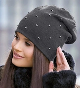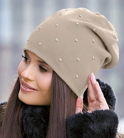 Czapka damska, bawełniana, z dżetami, Gatina, beżowy jasny, 56-58 cm