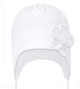 Biała czapka bawełniana z kwiatem, wiązana Damma rozm. 42-44 cm