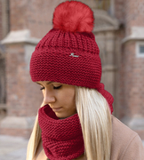 Czapka i komin damski, z pomponem, zimowy komplet, Mauricia, czerwony (11), 55-57 cm