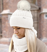 Zimowa czapka damska z pomponem, komplet z kominem, Mauricia rozm. 55-57 cm