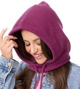Komin z kapturem damski, kominiarka/kaptur zimowy wełniany, Ruanna, fuksja, 55-60 cm