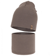 Czapka i komin dla chłopca, komplet wiosenny/jesienny, Loapo, brązowy, 48-50 cm