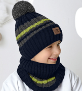 Komplet zimowy, czapka i komin dla chłopca, Bindua, granat + limon, rozm. 52-55 cm