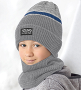 Komplet na zimę, czapka i komin dla chłopca, Ingolf, szary, 46-48 cm