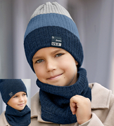 Czapka i komin dla chłopca, komplet jesienny/wiosenny, Noldon, niebieski, 50-52 cm