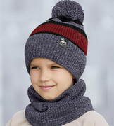 ( ilość produktów: 533 )Czapka i komin dla chłopca, Potrei, granatowy melanż + bordowy, 52-56 cm