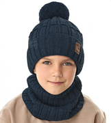 Czapka i komin dla chłopca, prążek, Yaleko, niebieski ciemny, 52-56 cm