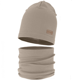 Czapka i komin dla chłopca, komplet zimowy Liwman, brązowy, 48-50 cm