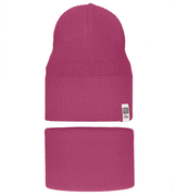 Zimowa czapka i komin dla dziewczyny, Wilma, róż ciemny, 48-52 cm