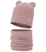 Czapka i komin dla dziewczynki, zimowy komplet, Jamala, różowy, 45-48 cm