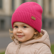 Czapka merino z pomponem, zimowa, dla dziewczynki, Macome, ciemny róż, 50-52 cm