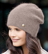Czapka zimowa, damska z angorą, Ashani, brązowy, 55-58 cm