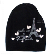 Czapka dla dziewczynki, smerfetka na wiosnę/jesień, PariPari, czarna, rozm. 48-50 cm