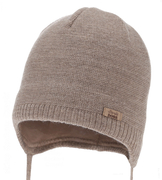Czapka merino dla chłopca, zimowa z pomponami, Kamino, brązowy, 44-46 cm