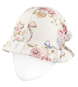 ( ilość produktów: 5054 )Kapelusz muślinowy dla dziewczynki, biały w kwiaty, KP01, regulowany obwód 46-53 cm