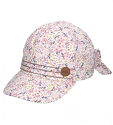 Czapka z daszkiem, z filtrem UPF 30+, Marangle, biała w kwiatki, 52-56 cm