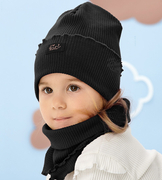 Komplet wiosenny/jesienny, czapka i komin dla dziewczynki, Jinote, czarny, 48-50 cm