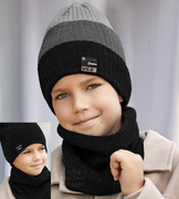 Czapka i komin dla chłopca, merino 50%, Nabasco, czarny, 50-52 cm