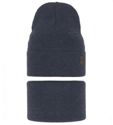 Zestaw dzianinowy prążkowany: czapka i komin, Gradon, granatowy (01), rozm. 46-50 cm