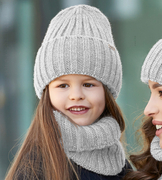 Czapka i komin dla dziewczynki, komplet zimowy, Rivola, szary jasny, 50-54 cm