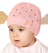 Czapka niemowlęca dla dziewczynki, róż pudrowy, Malena, 36-40 cm
