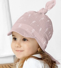 Czapka/chustka z daszkiem, muślinowa, dla dziewczynki, Linderi, brudny róż, 42-50 cm