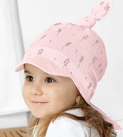 Kapelusz muślinowy dla dziewczynki na lato – 100% bawełna, Beien, różowy, 47-49 cm
