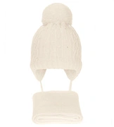 Komplet zimowy dla dziewczynki, czapka i szalik, Nancy, kremowy, 48-50 cm