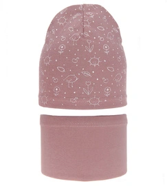 Komplet wiosenny-jesienny, dla dziewczynki, czapka i komin, różowy, Nesja, 50-53 cm
