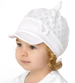Czapka z daszkiem dla dziewczynki, bawełniana, biała, Kevira, 42-44 cm