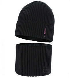 Czapka i komin dla dziewczynki jesienny, wiosenny komplet, czarny, Velara, 48-50