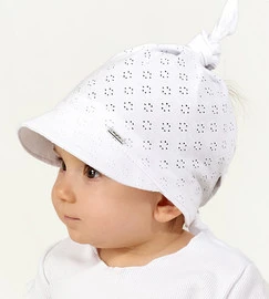 Czapka/chustka z daszkiem, ażurek, biała, Natka, uniwersalna 40-50 cm