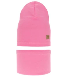 Komplet wiosenny-jesienny, dla dziewczynki, czapka i komin, różowy, Lesfie, 50-54 cm