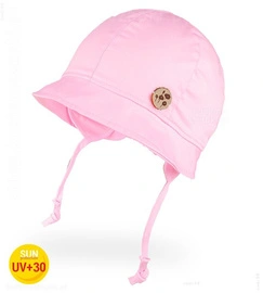 Czapka z daszkiem dla dziewczynki, wiązana, filtr UV+30, Pollia, róż jasny, 50-52 cm