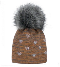Czapka dla dziewczynki na zimę, Deepti, brązowo-szary, 53-55cm