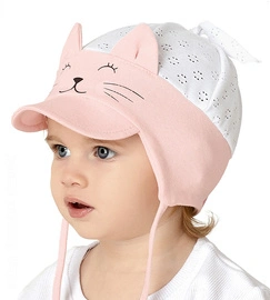 Letnia czapka dla dziewczynki z daszkiem i uszkami kotka, na kucyk, Kiccia, 44-46 cm