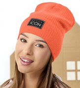 Czapka wiosenna-jesienna damska, z dzianiny w prążek, pomarańczowa, Engera, 54-57 cm
