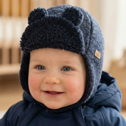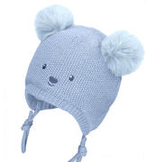 Czapka merino, niemowlęca, wiązana, Timoun, niebieska, 34-38 cm