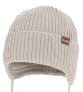 Czapka zimowa, niemowlęca, z wełną merino, wiązana, Saripn, szaro-beżowa, 36-38 cm