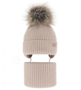 Czapka i komin dla dziewczynki, zimowy komplet, Ivanga, beżowy, 46-48 cm