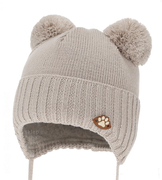 Czapka zimowa, niemowlęca, z wełną merino, wiązana, Saripn, szaro-beżowa, 36-38 cm