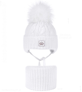 Komplet zimowy, czapka i komin dla dziewczynki, biały, Gitra, 42-44 cm