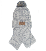 Czapka z dwoma pomponami i szalik dla chłopca, Osvald, szaro-kremowa, 42-46 cm
