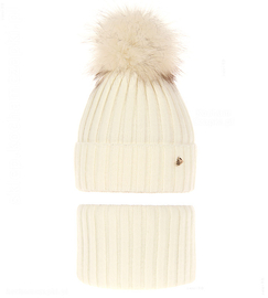 Czapka i komin dla dziewczynki, komplet na zimę, Wilma, kremowy, 46-48 cm