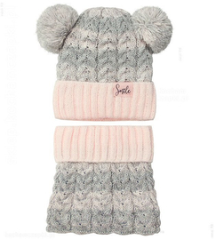 Czapka i komin dla dziewczynki, zimowy komplet, Miyu, pudrowy róż+szary, 45-47 cm